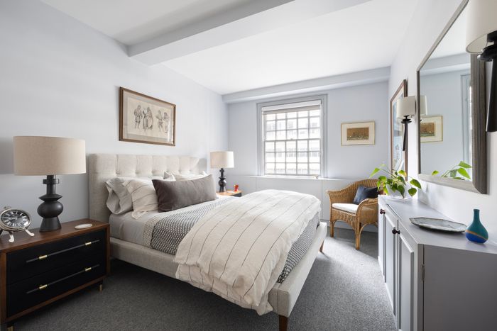 Do you door off the mezzanine floor leads to the primary bedroom. A Walk-in Closet, Not Pictured, House Rubin’s Tailored Suits and Is Big Enough to Become a Third BEDROM, Says Overbye. Photo: Brown Harris Stevens