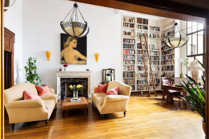Rubin COULD OFTEN BE SEEN READING ON A COUCH BESIDE The Wood-Burning Fireplace, which has a 17th-Century french stone added by a previous owner. Photo: Brown Harris Stevens