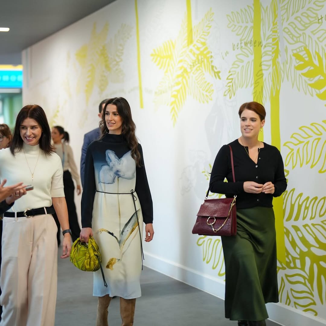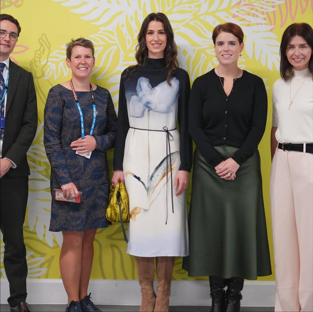 من جهتها ، ظهرت الأميرة يوجيني بإلالة أنيقة خلال زيارتها لمستشفى سبرينغفيلد الجامعي للصحة النفسية لن ( الأميرة رجوة. اختارت تنورة ميدي من السان بلون الأخر من علامة رالف لورين Ralph Lauren ، وهي قطعة أن ارتدتها ، مما يعكس اوقدددددcing في إعادة تنسيق ملابسها بأسلوب راقٍ. نسّقت التنورة مع كنزة بصوف ناعم بأزرار باللون الأسود ، وحقيب war Chloé ، وهي أيضاً من القطع المكرة في خاانتها.