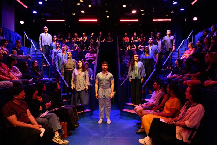 I will say that form is king for me. I don’t feel like I’ve found a show until I’ve figured out the how of it. I grew up playing classical music pretty seriously, and so I understood, metabolically, this is what a sonata feels like — this is the experience of a sonata; this is the experience of a nocturne; this is the experience of a suite. And then, as a theater-maker, I’ve always been frustrated that I go specifically to musical theater and I see story. I’m left craving more authenticity. So I felt like the way to make something more real is to screw around with it in terms of its linearity, and you can do that with music. I like trusting something to tell me where to put the fence posts of the narrative. I don’t write story well because I don’t experience life like that — and I’m allergic to artifice. So I’m really trusting the form to tell me what the arc is.