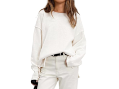 This signature knit nails that effortless, oversized fit, with dropped shoulders, a relaxed rolled neckline, and subtly undone hems that give it that perfectly lived-in look. Crafted from 100% cotton, it’s warm and cozy without ever feeling stifling (I’ve never had an issue with overheating in it) — ideal for layering over a tee or slipping under a jacket. And when it comes to styling, it truly does it all. I’ve worn mine with everything from jeans and sneakers to a slip skirt and heeled boots, and it somehow always works.