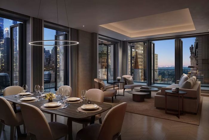 The Mandarin Oriental Residences, Fifth Avenue are advertised like hotel rooms that you can buy. The 65 condos come furnished in tasteful, bland beige and include all the spoils of a hotel suite: starchy Frette linens, Acqua Di Parma bath products, and a Dyson hair dryer. The building contains Daniel Boulud’s only private restaurant and has a partnership with Saks Fifth Avenue that stocks closets, allowing buyers to arrive in town without so much as a suitcase. For this and other reasons, the building — which was finished last spring — is pitched to pied-à-terre buyers as a place where “every detail has been meticulously crafted to create a sanctuary of comfort and sophistication.”