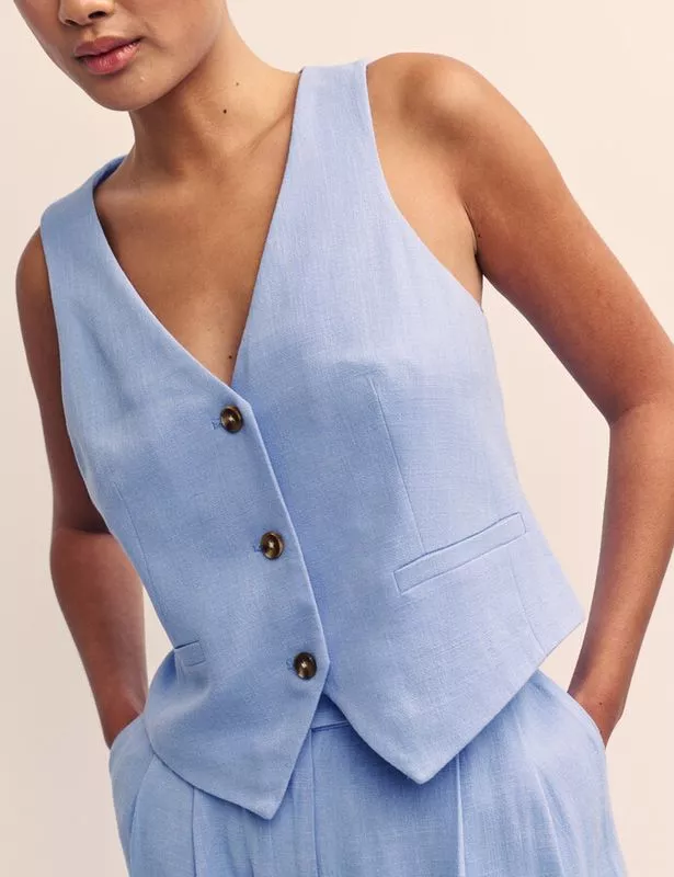 If you had your heart set on the same silhouette, Whistles has this Pale Blue Molly Linen Waistcoat that’s ideal for copying the look.