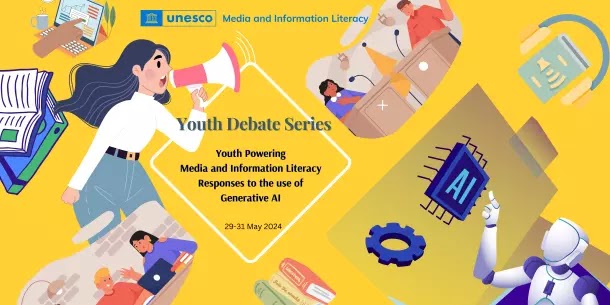 Recordings of the UNESCO Media and Information Literacy Youth Debate Series that took place 29-31 May 2024 (theme: Youth Powering Media and Information Literacy Responses to the use of Generative AI) are available. They are each about 90 minutes long and each has international teams arguing for and against the proposal