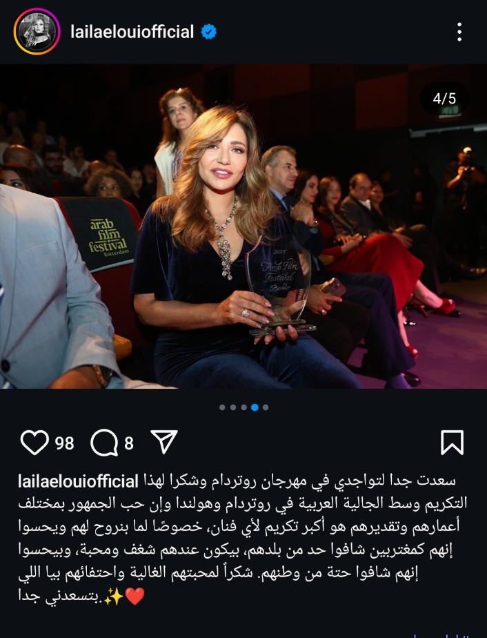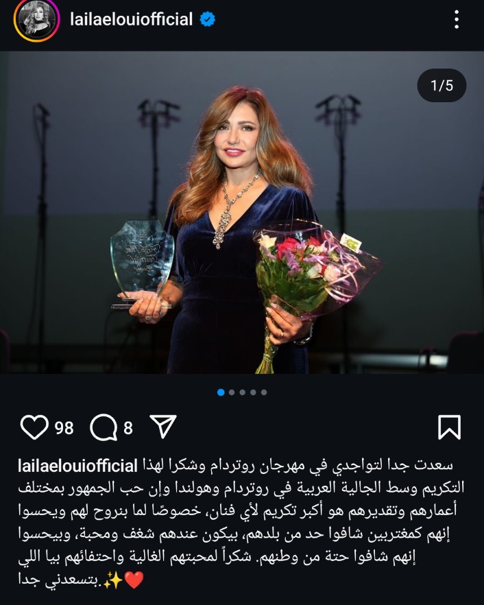 ونشرت تدفع من صور عبر حسامها على صوت عرض الموقع الصورة لإنستجرام الصور والفيديوهات الانستجرام: “Saadt jeda لتواجدي في في محاجنة روتردام وشكرا في التعريف وست الالجالية العربية في روتردام وهولندا ون حب حبور بمفتح أعمارهم وتقديرهم هو اكبر تعريم على فانان, فيسائً لما بنروح لهم ويحسوا ينهم كم غربين شافوا حد من بلدهم بيكون عندهم شفق وحمبة, وبيحسوا ينهم شافوا حتة من وطانهم, شكراً لمحبتهم الغالية واحتفائهم بيا اللي بتسعدني جدا”.