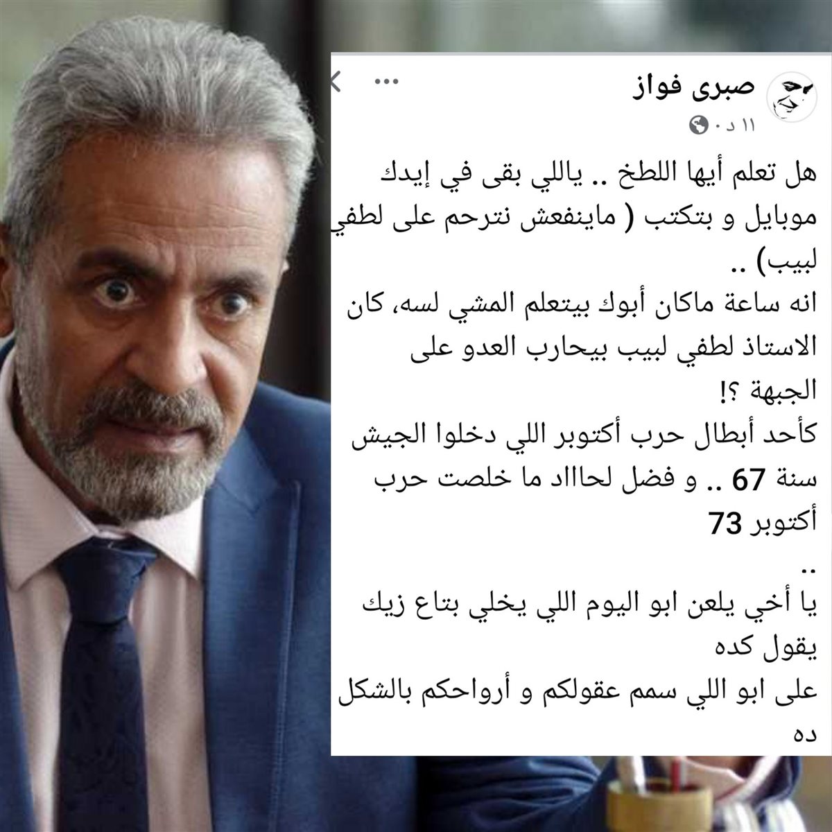 انکسمت الآراء after the death of Lutfi لبيب, فبینما عبّر اعلیب رواد السوسیال میدیا عن حزنهم شفاد وترحمهم علیہ, خریگت limited by some of the comments of the person who objected to his prayer, ignoring his national and technical history, and it did not cause a wave of anger بين الحمنين, جاء اعلیہهم سبری فواز, who was the strongest and strongest in the response.