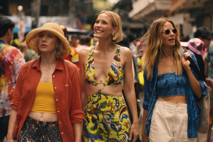 After a mishap at a retirement pool, Jaclyn demands that their guide for the week, the hunky Valentin (Arnas Fedaravičius), take them somewhere fun, but she doesn’t change her outfit. He brings them into the city for some shopping and a beach club before calling his friends and leaving the women on their own for a bit. It’s Songkran, so the streets are filled with children having water-gun fights, and the women are quickly “targeted” by the locals. All sense of fun is gone; as the women scramble away, Jaclyn throws a fit and screams “I’m wearing white” at the children. They end up at the club, finally happy, with Jaclyn’s expensive canvas tote slung over her arm. “What happens in Thailand stays in Thailand,” Jaclyn says. “We’re not dead yet.”
