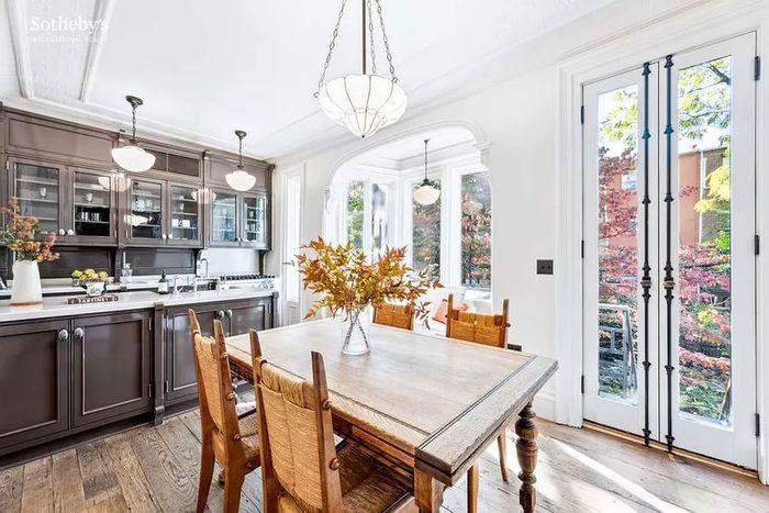 The sunny garden floor kitchen in this listing photo shows the decorators kept some original details of the townhouse. Photo: Sothebys International Realty