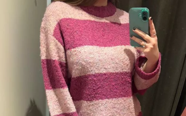 It’s predominantly purple and pink, however upon closer inspection, she realized the textured boucle knit has flecks of other colors too, such as blue and orange. The jumper costs £35 and is available in sizes XS to 2XL.