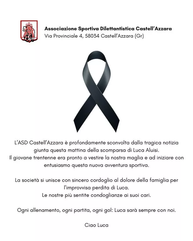 A club spokesperson said he had been “ready to wear our shirt and begin this new sporting journey”. They added: “ASD Castell’Azzara is deeply shocked by the tragic news this morning of Luca Aluisi’s passing.