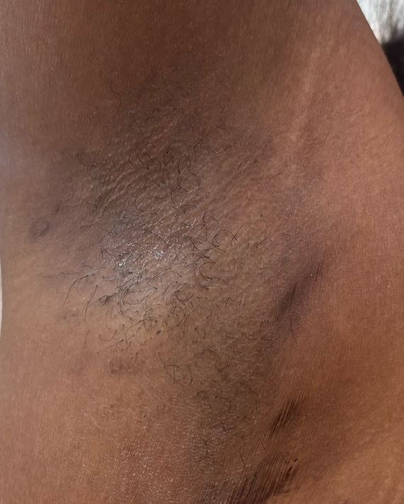 In January 2020 she found a medspa, but she was too scared to try laser hair removal treatments on her groin area because of horror stories she’d heard of people getting scars. “I already had HS scars so I didn’t want to make that any worse,” Davis said. She paid $1,000 for an eight pack session and eventually added on two additional sessions, she just tried it on her underarms. “I had twelve sessions of laser and the hair was style growing back.” She does note that when the Covid lockdown started she went about three months without it so she lacked consistency at the start of her laser journey. “They told me it wasn’t a permanent solution so depending upon my genetic makeup and hormones, the hair could grow back.” That’s precisely what it did; to this day, it grows back normally.