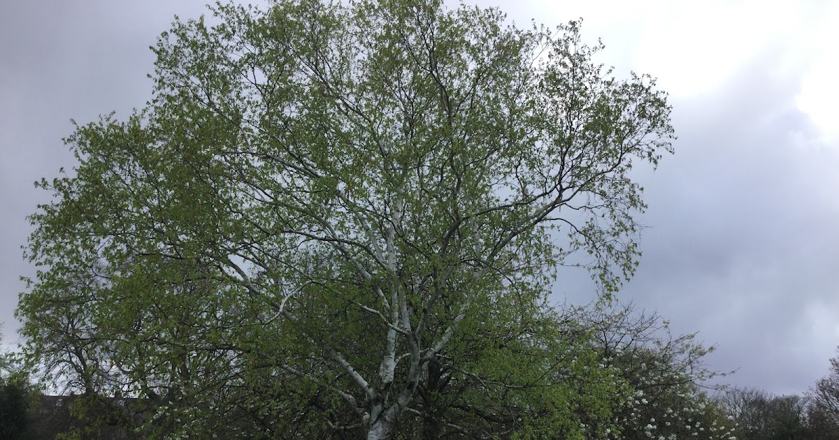 Photo by Sheila Webber of a Birch tree in the meadow in April 2024