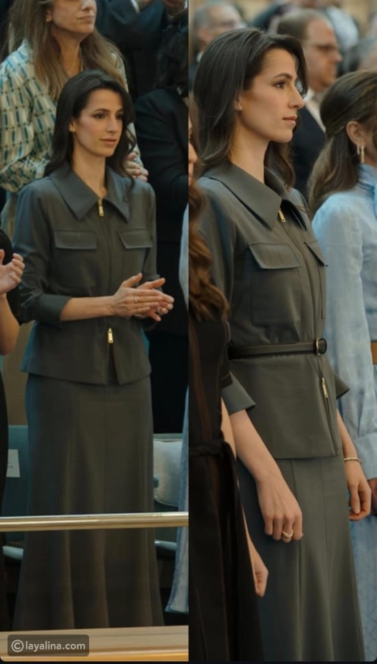 The most prominent piece in the princess’s look was undoubtedly the small black handbag that was decorated with elegant gold lettering and carried the word “Iman” in it. a clear reference to her daughter, the little princess, İman Al-Hussein, the child, who did not know what to do امومة والاعتزاز بالاسرة, ورسالة عنسانية صادقة وست مساعة صيائية ورسمية بامتياز.