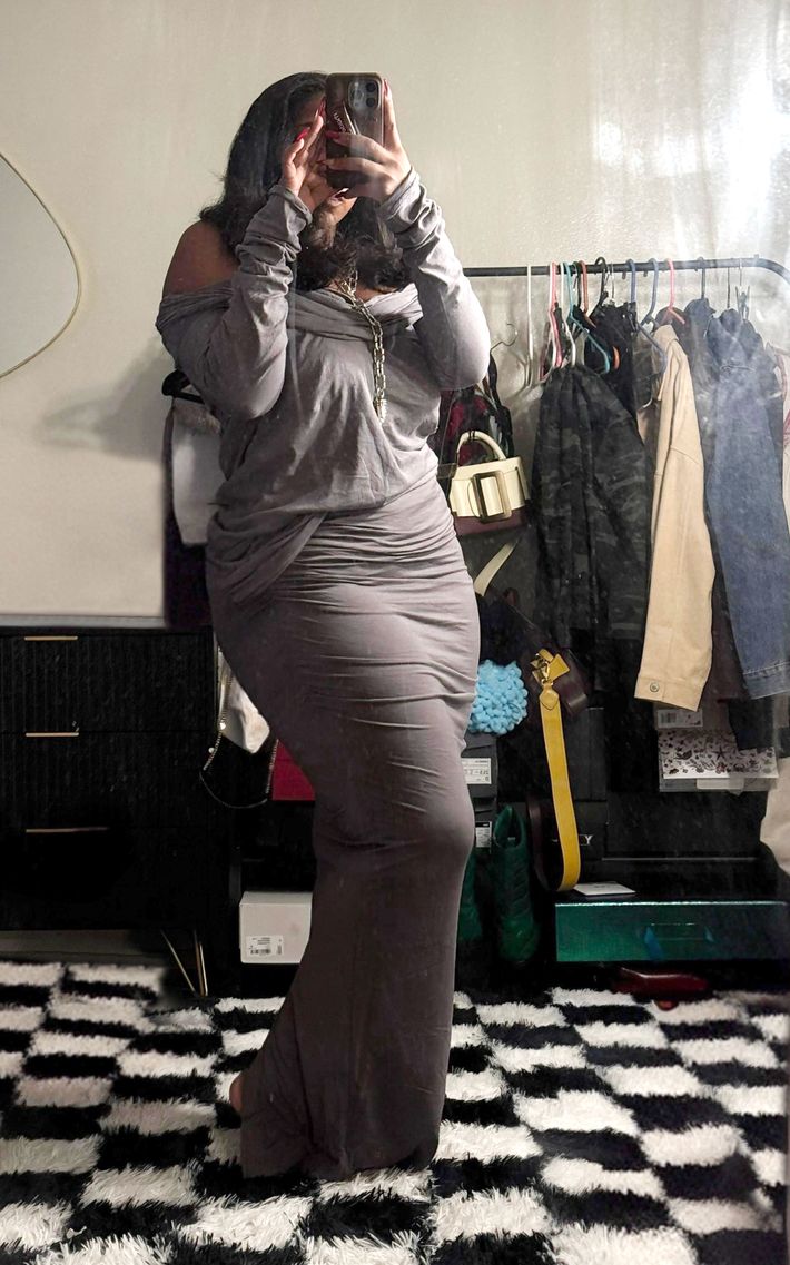 How did it fit? Knowing that the brand’s MO is relaxed and oversize, I was a little confused about what size to try. I am normally between a small and medium in most things, so I decided to go with a small for this, and it worked out great. The body of the dress fits like a glove. However, I struggled with arranging the ruched fabric of the dress, which features excess fabric around the neck opening. At one point, I even had it backwards with the slit at the bottom of the dress facing the front. Apart from the style of the dress, the fabric is super-stretchy and so comfortable. You can lounge in the dress just as easily as you can hit the town. Overall, I love how it accentuates my curves with the ruching across my body in all the right places.
