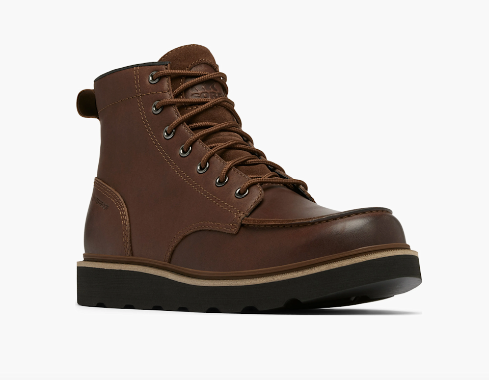 Sorel brings together the best of weather-friendly shoes and everyday casual footwear. These Moc toe boots are perfect for daily wear, and it feels like really a bonus that they perform well in bad weather. The waterproof uppers and sticky soles are great for staying dry and un-slipped. They have a comfy midsole, so they’re great for wearing all day long. For a no-brainer option you can put on and be sure they’ll always work with your outfit and the weather, go for these.