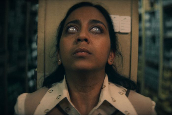Presented as a found film from the late 1970s — a gimmick taking the place of the usual tech-focused hook — this nearly feature-length horror-comedy sends a mild-mannered department-store saleswoman (Anjana Vasan) on a morbid journey. A demon taking the form of Boney M. lead singer Bobby Farrell (played by Paapa Essiedu) informs her that she must claim the lives of three souls in three days’ time or the world will be engulfed by the flames of Armageddon. Luckily for her (and us), she has been harboring jagged fantasies of smashing the faces of the many annoying racists who mill about her workplace. The script has a good time teasing out the logistics of her dark errand, though it leads her only to a big eschatological shrug that undercuts the moral scale-tapping preceding it. It all ends not with a bang but a cop-out whimper.