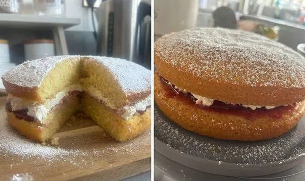 She continued: “I placed the jam on one cake, spread it on the whipped double cream and then placed the top of the cake on before dusting it with icing sugar.”