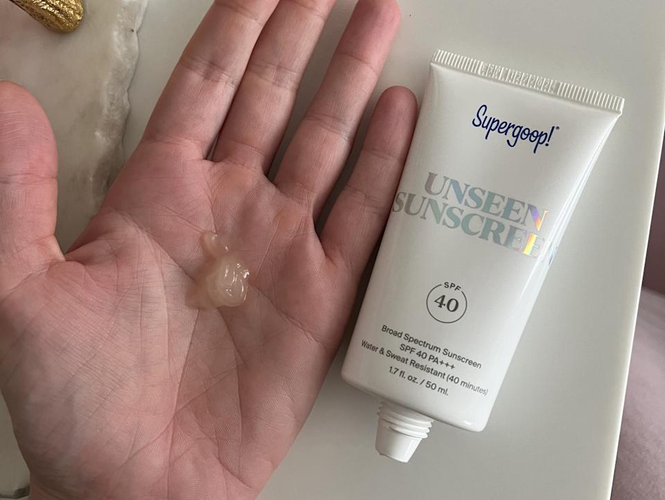 I was excited to test out Supergoop’s $38 SPF-40 sunscreen. Based on its website description, this is “100% invisible, weightless, scentless sunscreen.”