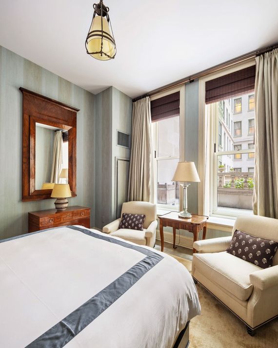 The apartment does not have Central Park views, but it does have a 522-square-foot terrace, an unusual feature in a non-penthouse Plaza apartment (the apartment itself is just under 800 square feet). Otherwise, it looks not unlike a high-end hotel room — there’s a marble bath, herringbone floors, and blandly tasteful decor. Common charges and taxes are just over $3,800 a month. The winning bidder will pay a 10 percent deposit on the day of the auction and a 10 percent premium to the auction house.