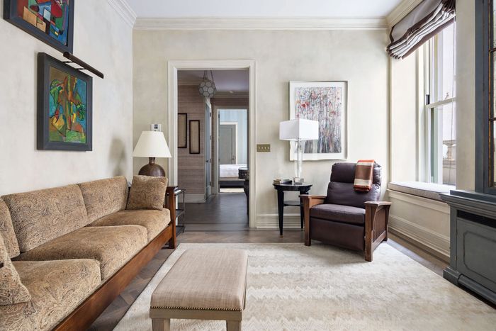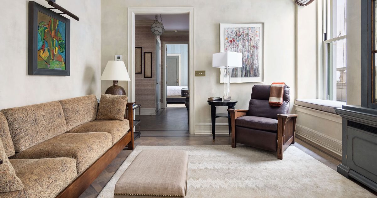 A photo of the living room, which faces the courtyard, has been featured in listing photos of the unit, up for auction. Apartments with park views traditionally trade for more. Photo: Elegran