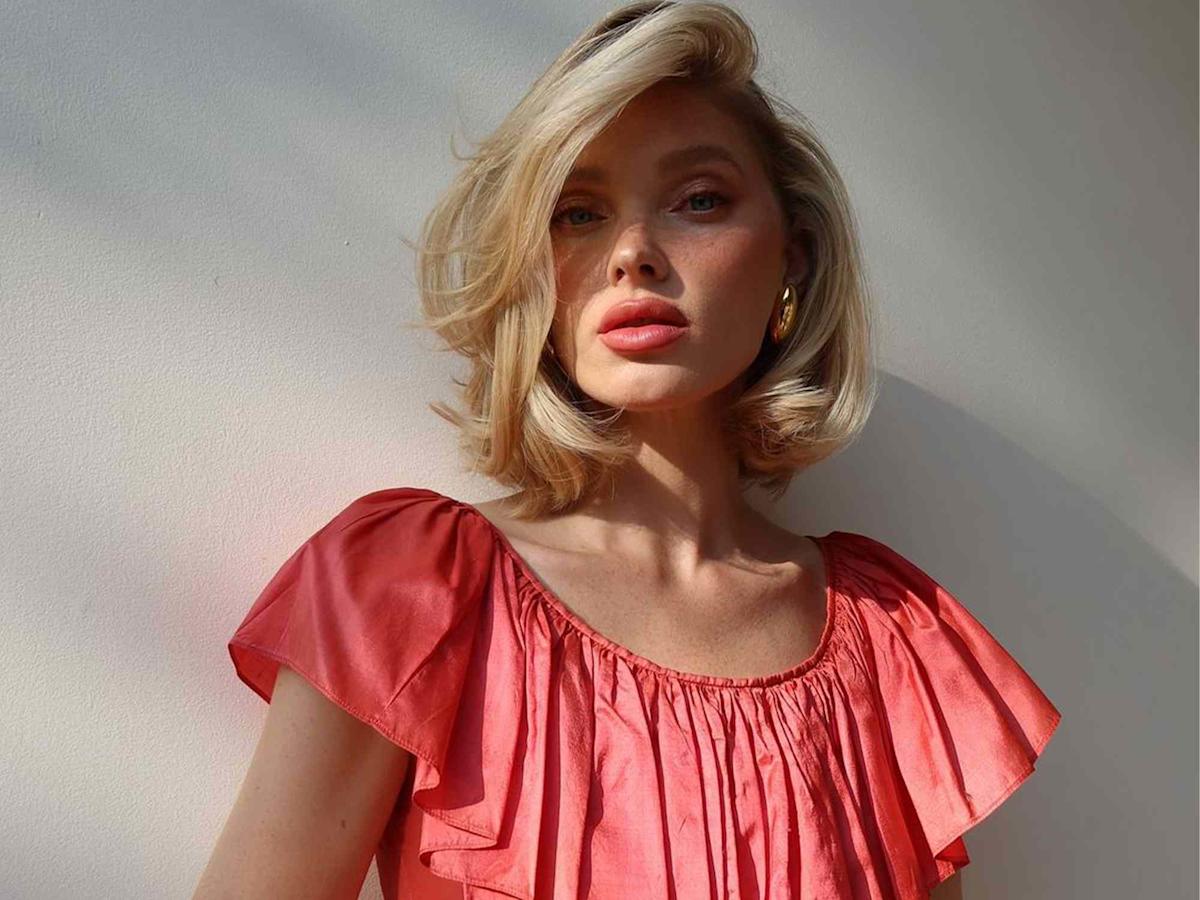 The bounce in Elsa Hosk’s loose curls gives a dramatic feel to the curved bob. The extra volume and soft waves give the silhouette even more of a retro vibe.