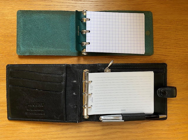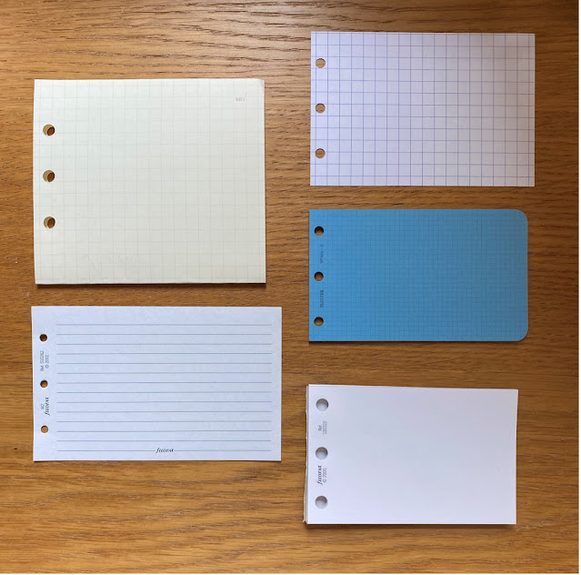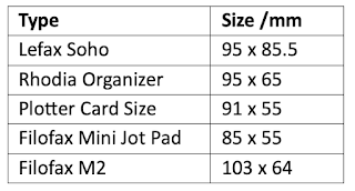 These five sizes are compared below (clockwise from top left Lefax Soho, Rhodia Organizer, Plotter Card Size, Filofax Mini Jot Pad, Filofax M2.):
