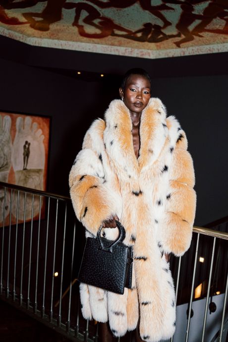 Ade-Chuol stole the spotlight in a gorgeous coat and Luar purse at the Mert Alas St. Valentine Party with Seventy One Gin Cocktails at Clemente Bar.