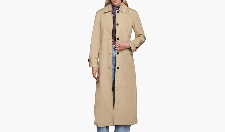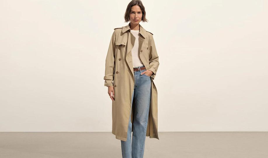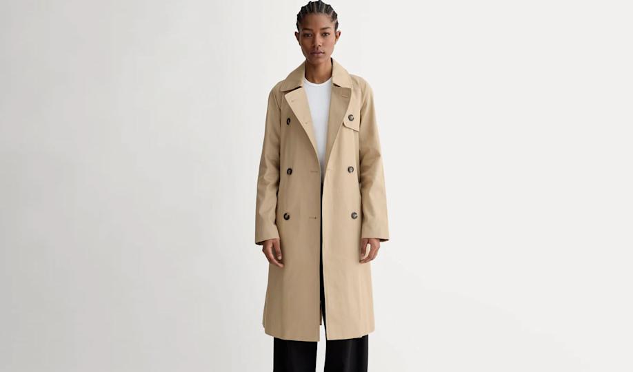 Made from 100 percent organic cotton with a recycled polyester lining, this trench has near-perfect ratings at Everlane, and it’s so easy to see why. Not only are the materials eco-friendly, but the coat’s designed with double-breasted buttons, front and back storm flaps and a tie belt to cinch it in at the waist. Plus, it comes in four different colors and sizes XXS through XXXL, so you have plenty of options when it comes to fit and style. “The coat creates a nice silhouette. I like the large pockets and detail of the slit on the back. The material is solid, looks durable. The belt without the buckle is more practical,” shared one reviewer.