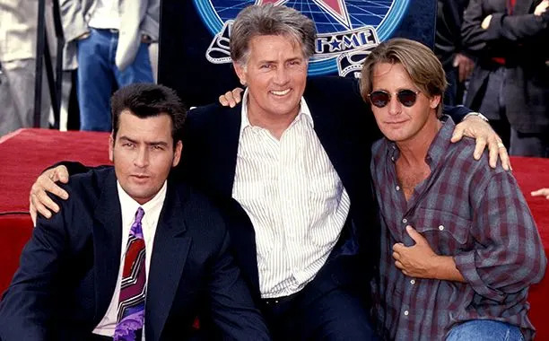 Jim Smeal/Getty Images Charlie Sheen with father Martin Sheen and brother Emilio Estevez in 1994
