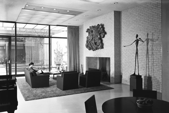 The house soon started to trade like the art it once housed. MoMA eventually sold it, and for eight years starting in 1971, Philip Johnson himself lived there with his partner, David Whitney. The owners had asked Johnson to help find a tenant, and the couple decided to take it for themselves. “We were living in a ratty old two-room walk-up and thought this would be a marvelous change,” Whitney told the Times in 1974. Perplexed by his critics’ claims that his homes were unlivable, Johnson redecorated, but apparently saw no need for a kitchen — he just took his meals at the nearby Four Seasons. As for having to go through the open courtyard and over the pond’s stepping stones to get from his bedroom to the living room, Johnson seemed exasperated that the Times the reporter would even ask. “Why it takes seconds,” he told her.