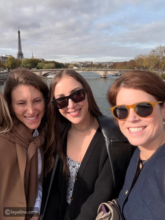 Princess Eugenie, aged 35, was seen on a trip with her friend to the French capital Paris, where she published a group of her photos via her personal account on Instagram, with the Seine River and the Eiffel Tower behind her.