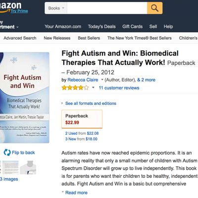 One book, Healing the Symptoms Known As Autisminstructs parents in how to make chlorine dioxide — a bleach-like substance that is sometimes marketed as “Miracle Mineral Solution.” Although the substance has never been scientifically verified as a treatment for any condition, an Amazon search for “Miracle Mineral Solution” turns up more than 25 books extolling its supposed benefits.