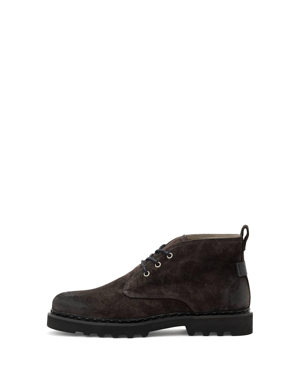 Speaking of effortlessly cool, John Varvatos makes a chukka boot that feels like a work boot but also looks just right in almost any room you wear them in. Maybe that’s because they are straightforward: calf leather lining, double-waxed laces, stitched welt, and an easy rubber sole. They come in this tannish brown and a gray suede, as well as in black leather.