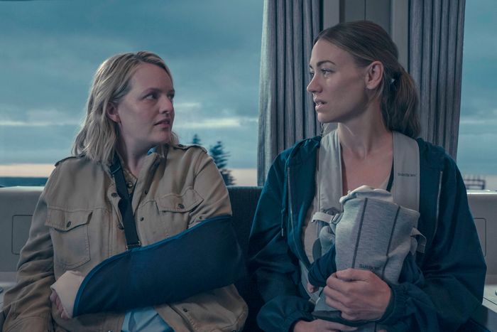 As the new season opens, June and her younger daughter, Nichole, are aboard a train bound for Vancouver, where they plan to sail to Hawaii and safety from Gilead enforcers eager to take June’s life. June’s husband, Luke (OT Fagbenle, whose whole body radiates stress in these episodes), gets arrested before he can even board the train, charged with attempting to kill a Gilead-aligned truck driver who tried to run over June. While on the train, June runs into Serena (Yvonne Strahovski), the ultimate Gilead trad wife for whom she once served as a handmaid. Seeking freedom after having been silenced and disregarded by Gilead higher-ups, Serena sees herself as a victim standing on the same side as the women who were raped and forced to give birth to babies for their commanders’ families. Needless to say, June doesn’t exactly see it that way. “The enemy of my enemy is my friend,” Serena says of her relationship with June while the two sit in a crowded train car, earning a look from June that might as well be a bullet fired at point-blank range into her perfectly unwrinkled forehead. “On a case-by-case basis,” June responds coldly.