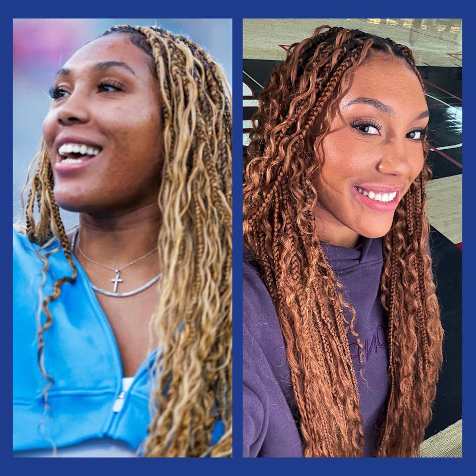 And the players we spoke with said their beauty transformations impact their lives both on and off the court. “When I feel good about how I look, it carries over into how I carry myself on the court. Having confidence is such an essential aspect in basketball, and a bold look just adds to that energy,” says Huskies guard Morgan Cheli, who sports a rich chocolate brown.