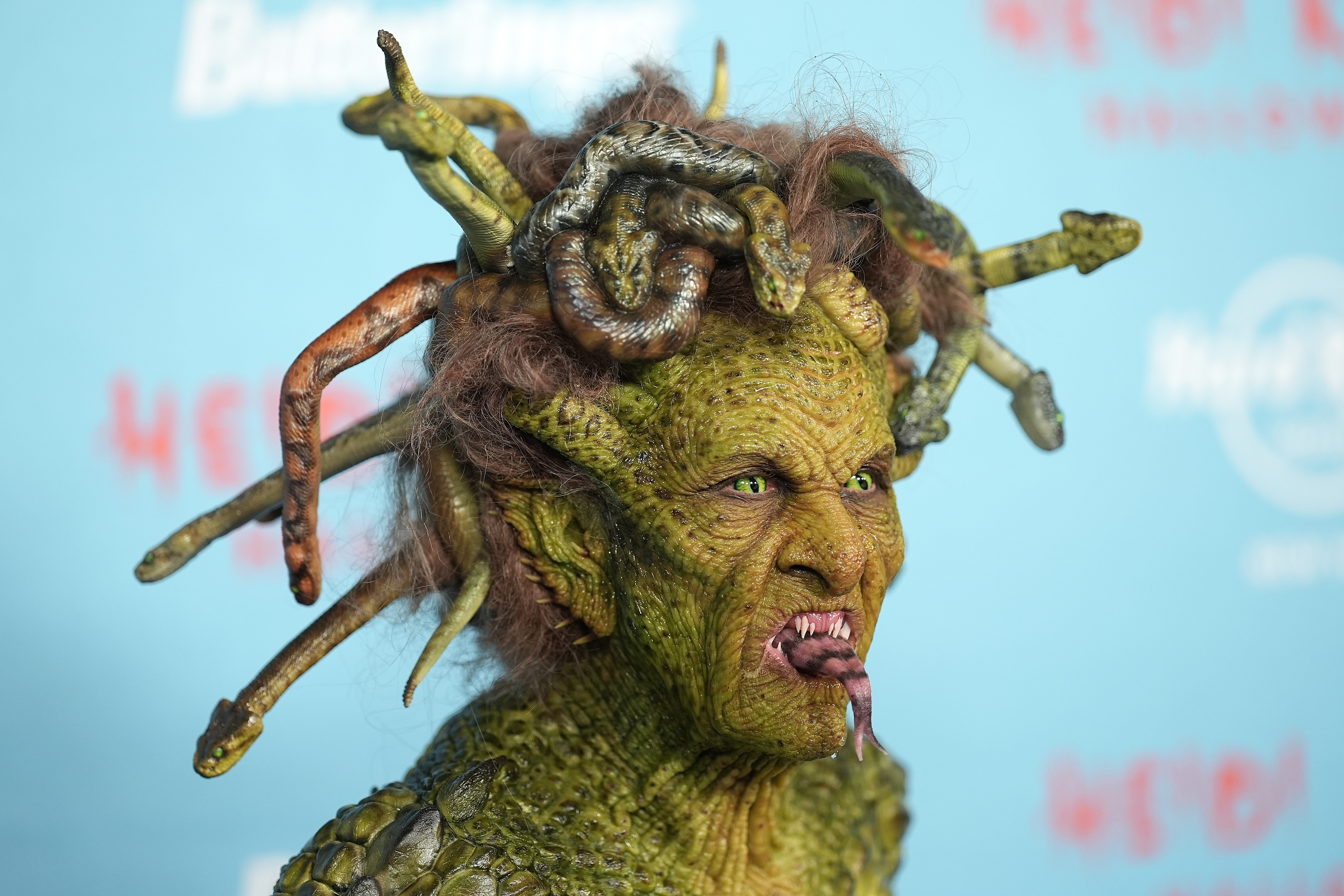 The “Project Runway” host debuted the look at her 24th Annual Halloween Party presented by Butterfinger at Hard Rock Hotel New York and was joined on the red carpet by her husband Tom Kaulitzwho was the Greek hero who beheads Medusa, Perseus.