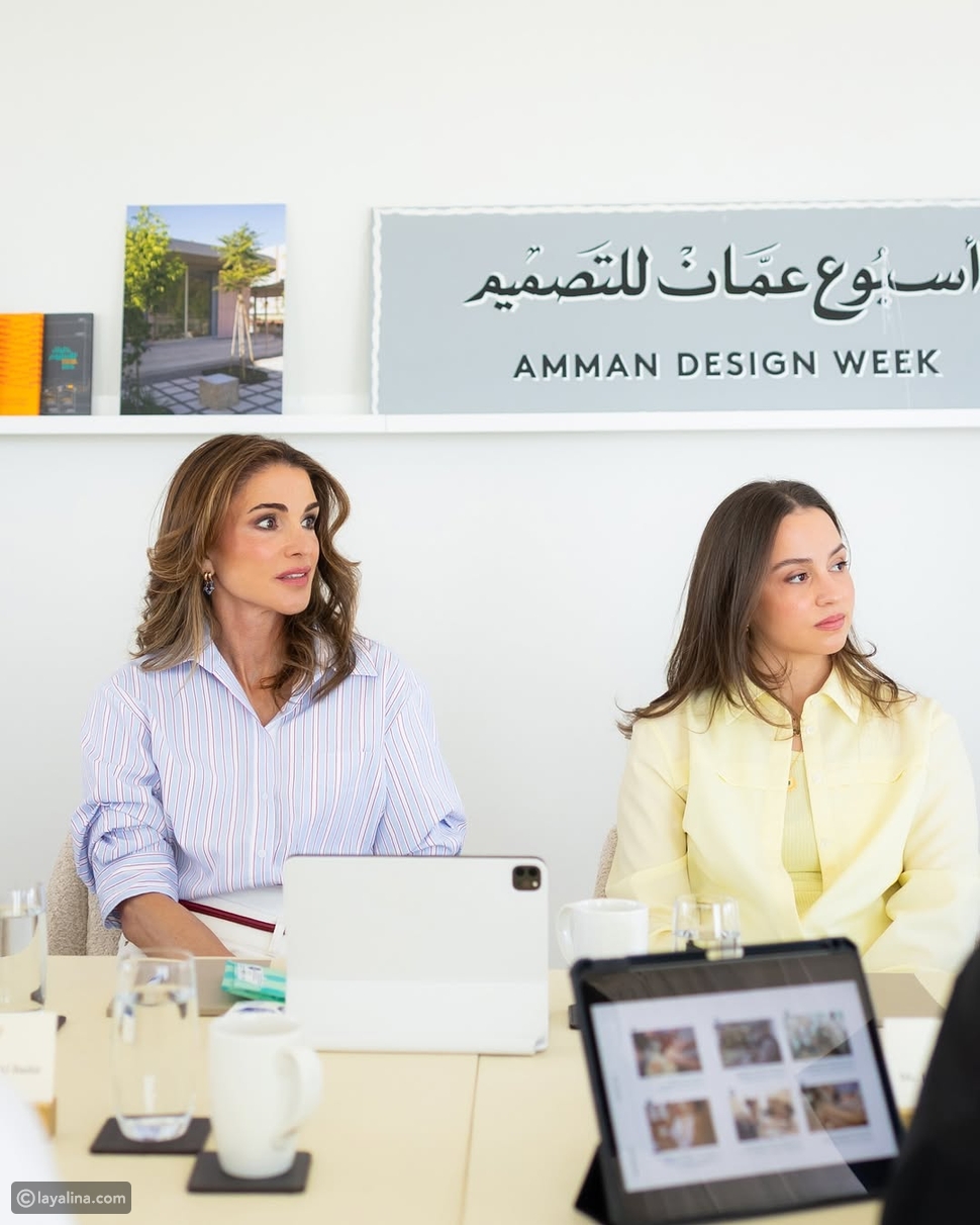 With all due attention to the creative sector of Jordan, Queen Rania Al-Abdullah and her daughter Princess Eimaan visited the “Design Center in Oman” to continue the early preparations for the 2026 edition, which will be held under the title “Campram”. The visit was an opportunity to meet local designers and learn about their projects in areas including fashion, ceramics, architecture, graphic design, and woodworking.