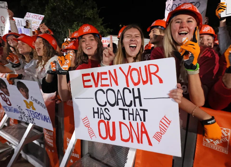 Fans arrive early for ESPN’s “College GameDay” ahead of the Oklahoma-Michigan game on Saturday, Sept. 6, 2025, in Norman, Oklahoma.