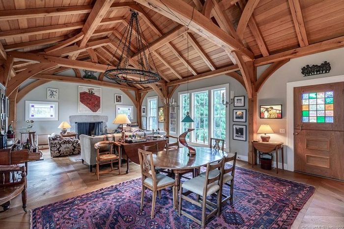 Sondheim died in 2021, his townhouse went into contract a few weeks agoand now his sprawling three-bedroom Connecticut compound is on the market for $3.25 million. The 1792 home was restored in a way that stripped it down to its essence: A vaulted ceiling in the main, open living area exposes wood beams. A sunny, glassed-in porch retains old stone flooring. Wide plank floors give the place character and spunk — especially in a brainy little wood-walled office, where two guitars sit by a radiator. There’s a library with a rolling ladder, and shelves and drawers that look designed to have held his archive. Then there’s a sunroom with windows on three sides, which now pour light onto a grand piano. Around the room are cubbyholes that likely held sheet music, and behind it is the chaise where one can assume Sondheim wrote, which he customarily did lying down.