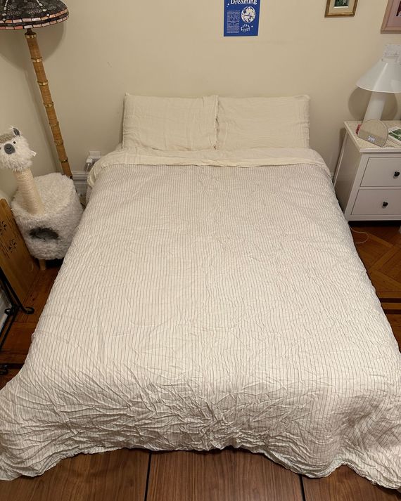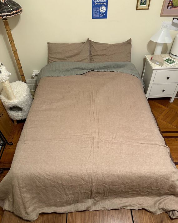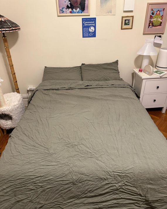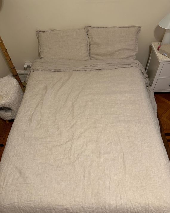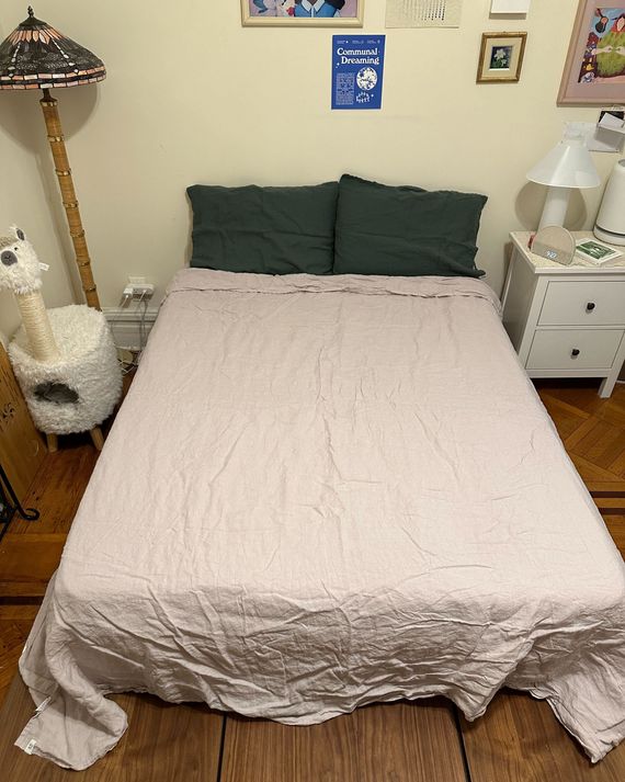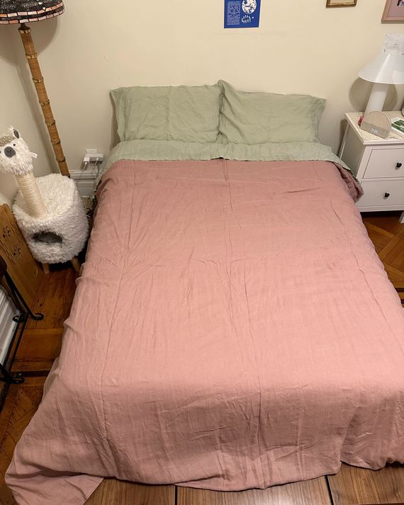 My roommate recommended Bed Threads. I also found an extra fitted sheet and flat sheet from a Polish Etsy shop that has since closed down. At the time, I loved both sets. The Bed Threads sheets were light, airy, and supersoft, while the Etsy sheets were thicker and more textured, never getting too wrinkled. It really did change my sleep: Linen is a thermoregulating fabric, which conducts heat to help keep you warm in the winter but is breathable and moisture-wicking to keep you cool on sweaty summer nights. Linen is so comfortable to sleep on that I actually miss my sheets when I sleep at a hotel now. On an aesthetic level, I suddenly loved looking at my bed, and it no longer felt like a chore to make it up every morning.