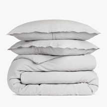 I tested the recently launched natural beige colorway. They were immediately soft and comfortable to sleep on with a lighter weight that makes them feel flowy and breathable — but the weave is tight and ensures total opacity even in such a light shade. I did notice a bit of fluff shedding from the inner ties of the duvet cover after I washed the sheets, but otherwise, the fabric is excellent and the sheets are lightweight while still keeping me warm and cozy on colder nights.