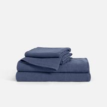 I tested a fitted sheet, flat sheet, and duvet cover. They’re made of a densely woven, midweight linen that resists any noticeable wrinkling, maintaining the slightest rumpled texture you can curl right into. They were the only patterned sheets I tested, and in terms of appearance, they were my favorite — the mossy-green gingham duvet was a perfect complement to the dusty purple sheets. I was also really impressed by the weight of them, and they were especially warm on colder nights.