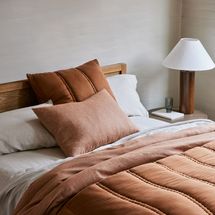 This small Ukrainian brand based in the coastal city of Odesa draws its inspiration from the Black Sea that borders it. The linen it uses is Oeko-Tex certified, and the sheets are hand-sewn at a local atelier.