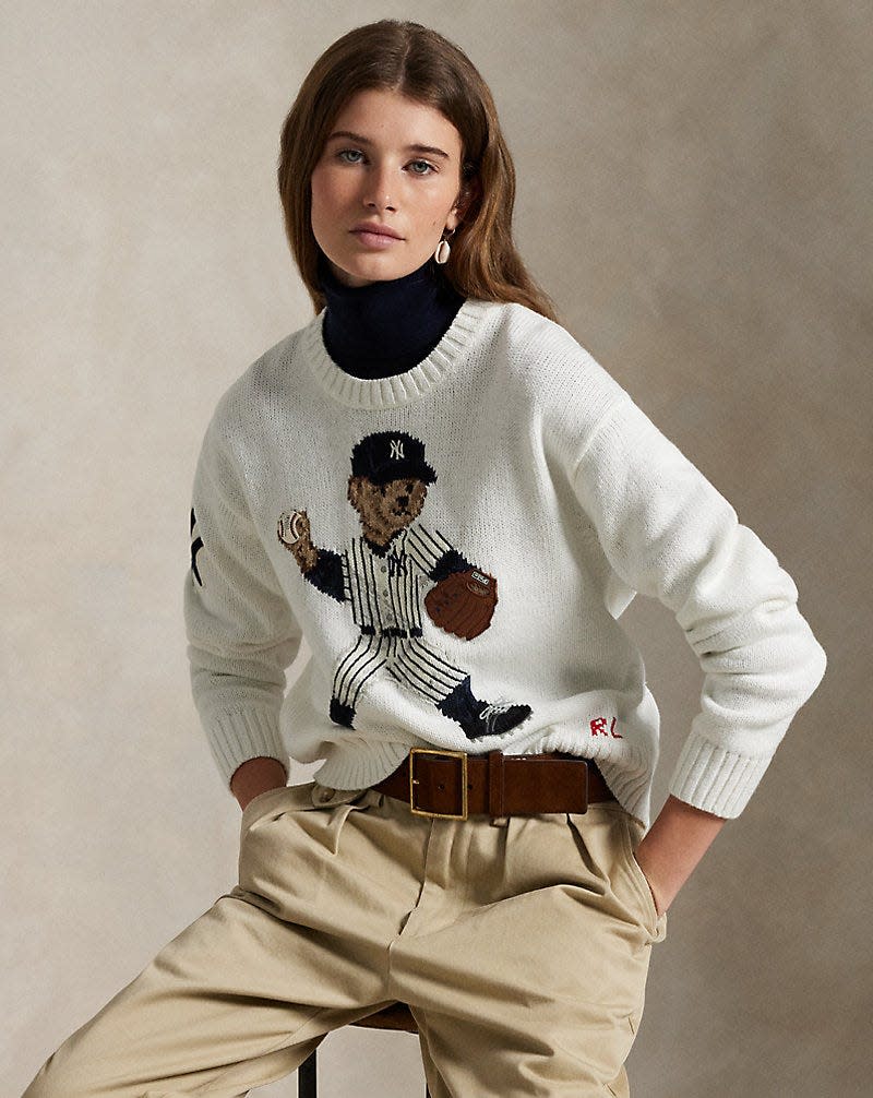 While there’s no shortage of on-trend sweater styles to wear during fall and winter, one timeless icon has captured our attention—and hearts—this year: The Ralph Lauren Polo Bear. Since debuting in 1991, the dapper little bear has become fashion’s most stylish mascot, featured on sweaters, sweatshirts, tees, and more. Today, thanks to TikTok, what began as a niche collector’s piece has evolved into a full-fledged luxury trend—one that our editors are seeing all over the streets of New York City, for starters.