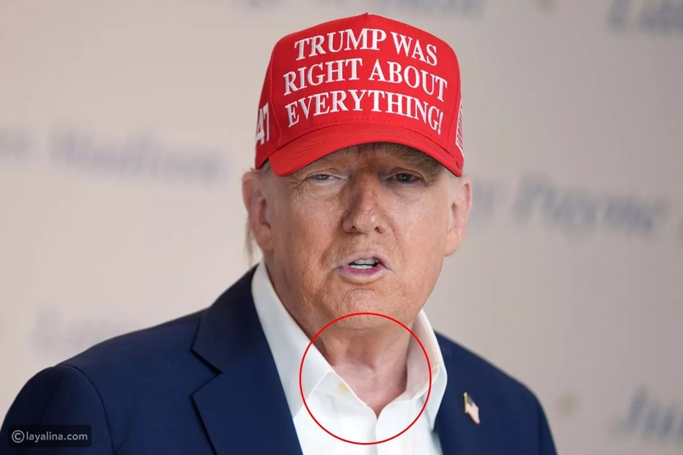 The international media was excited recently after the appearance of the American President Donald Trump during the press conference in the White House with visible makeup stains on the collar of his white shirt, revealing unusual details about his beauty routine.