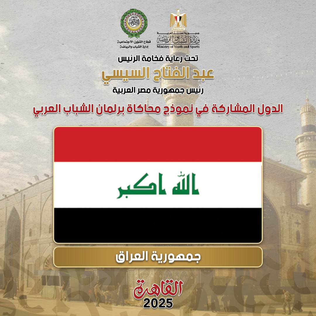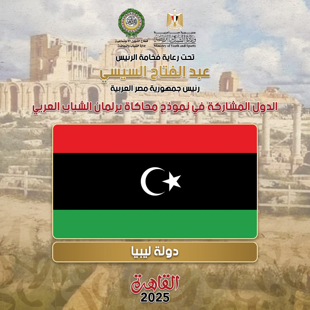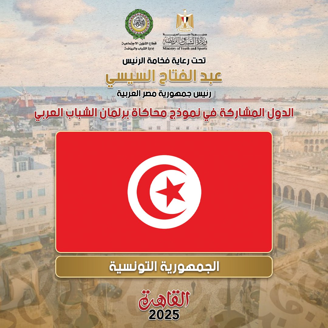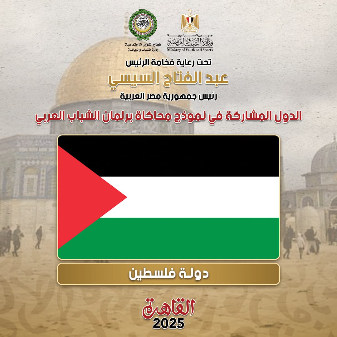 The Ministry of Youth and Sports, in cooperation with the Arab League, announced the list of Arab countries participating in the third version of the Arab Youth Parliament simulation model, scheduled to be held from October 11 to 18, 2025, under the slogan “Identity.. Arabia”, under the patronage of His Excellency President Abdel Fattah Al-Sisi, the President of the Republic, through the Central Administration of Civil Education – General Administration of the Youth and Foreign Parliament.