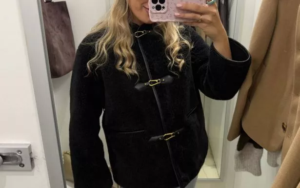 Last year’s buckle coat trend isn’t slowing down any time soon so shopping writer Lucy Addicott headed to Marks and Spencer to try on the brand’s latest fashion-forward piece. She said: “I was instantly drawn to this black option, thanks to the vintage gold-tone buckles and cosy faux fur fabric.”