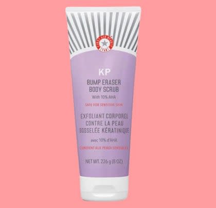 This exfoliating scrubwhich has earned a cult following among people with all types of skin, is a fine pumice-based formula that functions closer to a microdermabrasion treatment. I have been a dedicated user of First Aid Beauty’s KP bump eraser for years as a way to instantly treat my incredibly stubborn and very obvious keratosis pilaris on my arms. Its ability to soften rough skin is probably primarily due to its 10% concentration of AHAs, like glycolic and lactic acids. This category of chemical exfoliants can work to refine skin texture and slough off the dead skin cells that are responsible for those pesky bumps. The formula is also enriched with natural ingredients bisabololan antioxidant that offers soothing benefits post-exfoliation.
