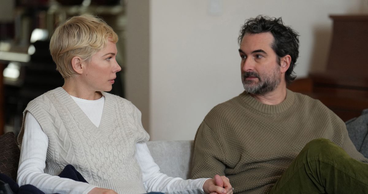 As the series opens, Molly (a luminous Michelle Williams) finds out she is dying. She’s in the middle of a therapy session with her milquetoast husband, Steve (Jay Duplass), when she gets a call from her doctor. Her cancer is back, and it is now Stage IV. Instead of sitting down and processing this information, she pops out to the bodega across the street, buys a two-liter bottle of something called Good Value Diet Soda, and calls her bestie, Nikki (Jenny Slate). She breaks the news to Nikki, and Nikki has a glorious argument with the bodega owner about expressing emotion in public.