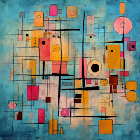 Image created by Sheila Webber using Midjourney AI using the prompt algorithms of resistance in the style of Paul Klee